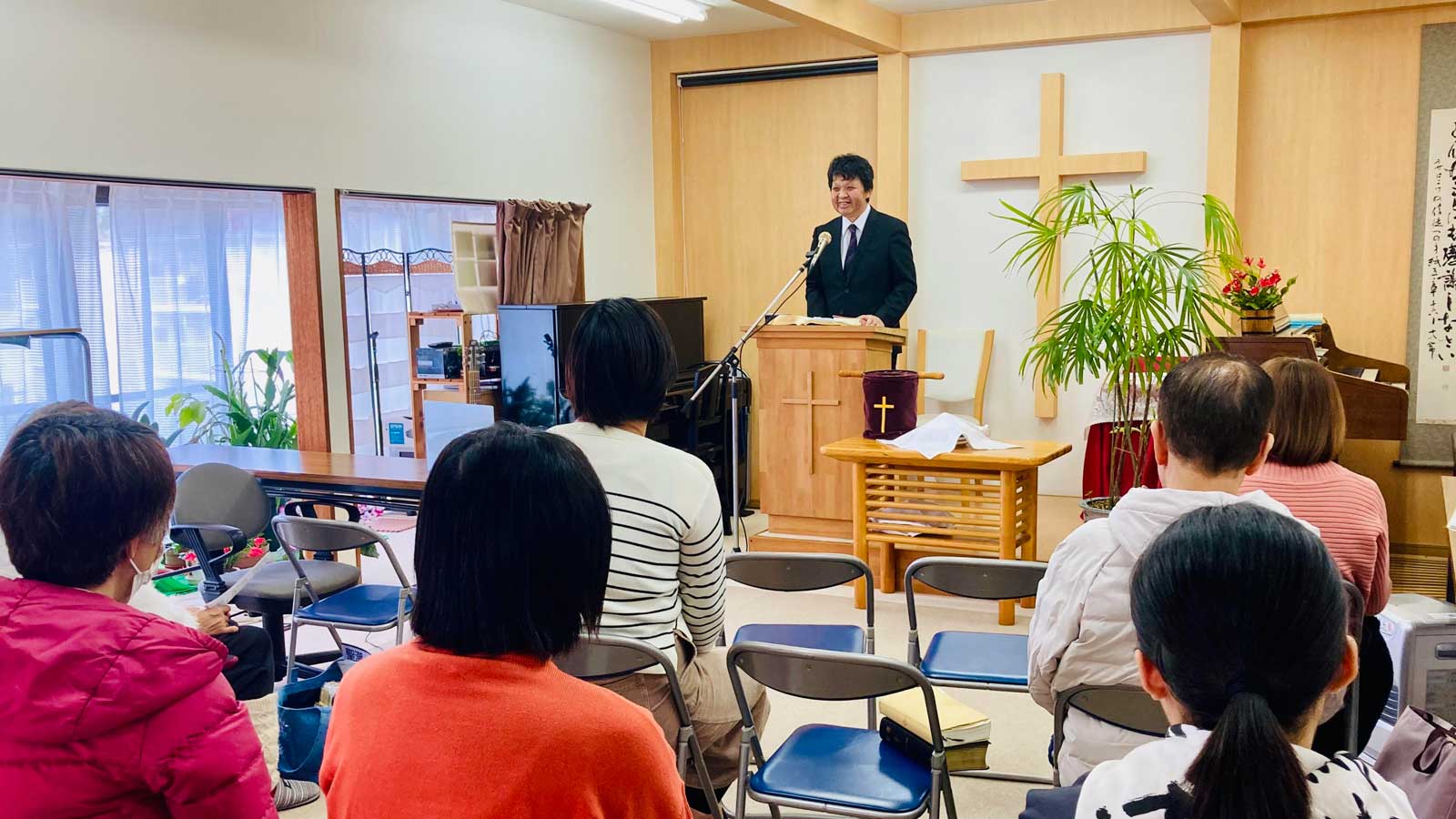 毎週日曜日の礼拝には15名程の方が来られています。礼拝中は、こどもや赤ちゃんの声が聞こえることもある明るい教会です。お子さま連れでもご安心してお越しください。