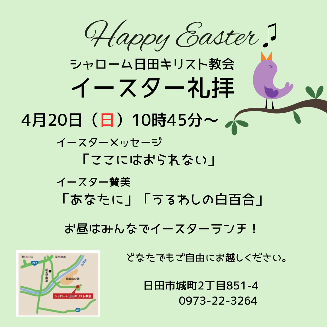 シャローム日田キリスト教会のホームページにようこそお越しくださいました。ありがとうございます。